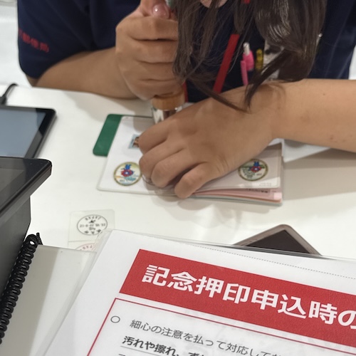 郵便局では記念切手に消印押してくれるのだけど、押す場所とかきれいに押せなくても免責とか