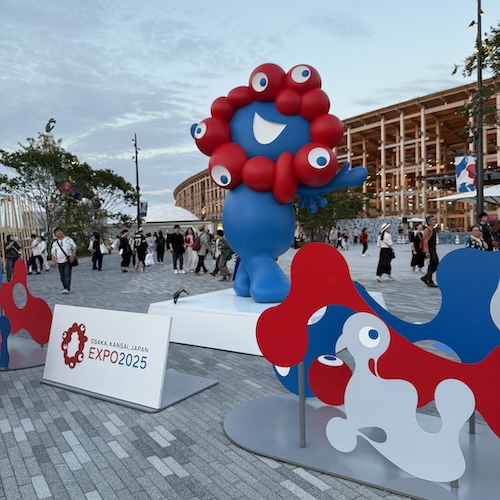 ウェルカムミャクミャクは東と西でポーズがちがうのね!