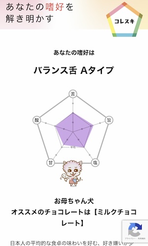 不二製油のチョコレート診断なるものを受けて自分の嗜好にあったチョコをもらえるので試す。