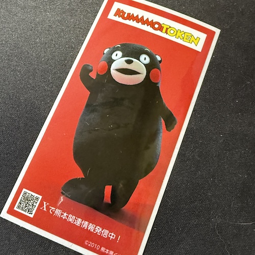 母ヶ浦面浮立(佐賀)のステージを見て、くまモンのシールをもらって抽選会に参加して