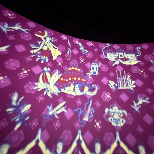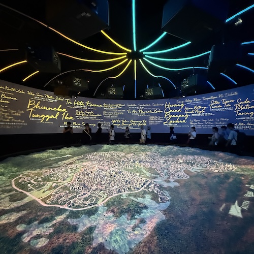これはインドネシア全体の模型かな。テキスタイルの展示の先はワヤンバリのドキュメンタリー