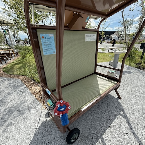 ちょっと西側にお買い物。市役所前にいたミャクミャク像もこちらに引っ越して来てる。